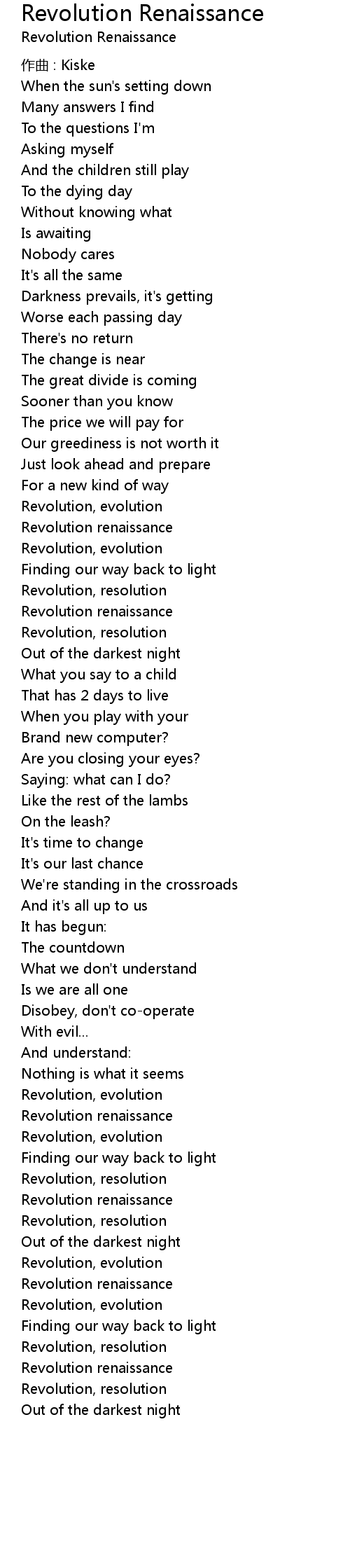 | Song | Revolution Renaissance |