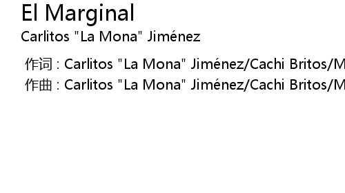 | [00:00.000] | zuò cí : Carlitos " La Mona" Jimé nez Cachi Britos Manuel Luis Tapia |
