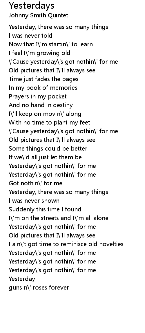 Yesterdays Lyrics