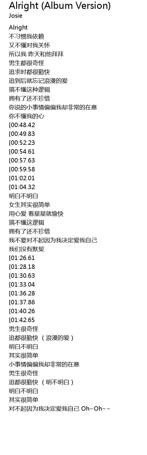 | [02:28.40][00:52.23] | 对不起 不用来 |