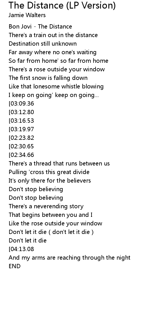 | [04:18.44][04:13.08][04:07.92][04:02.66][03:55.49] | I' ll go the distance |
