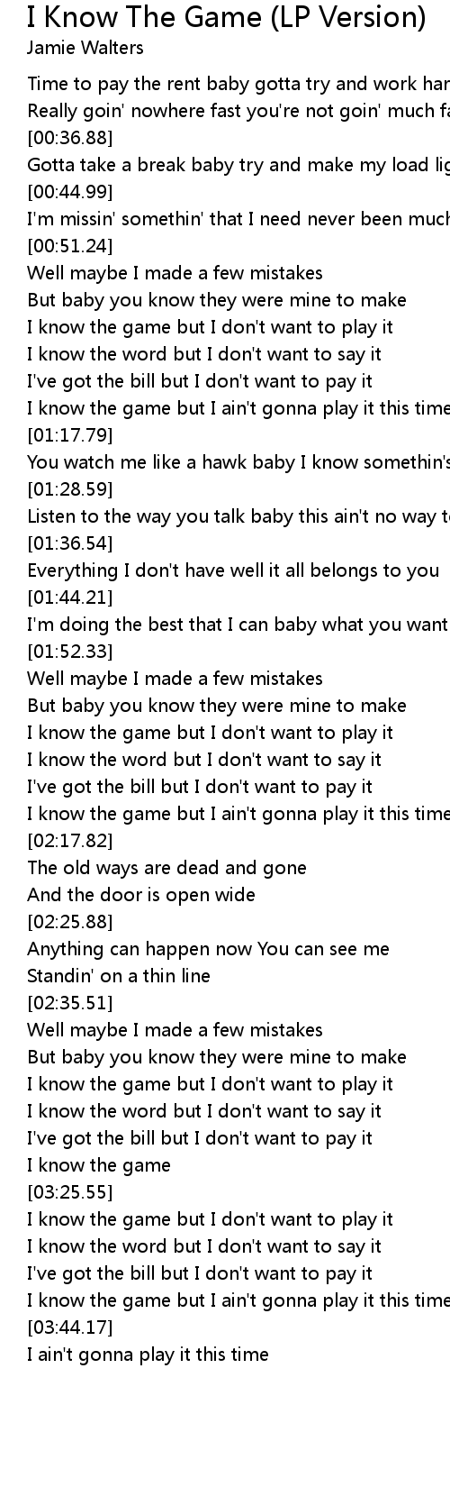 I know the game but I ain't gonna play it this time |