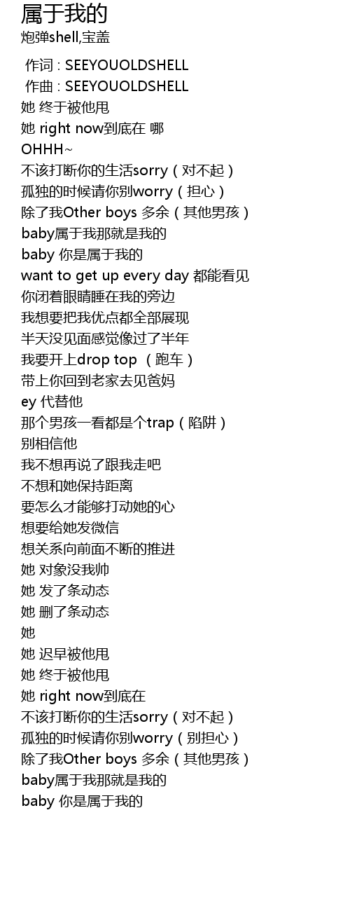 | [01:41.74] | baby shǔ yú wǒ nà jiù shì wǒ de |