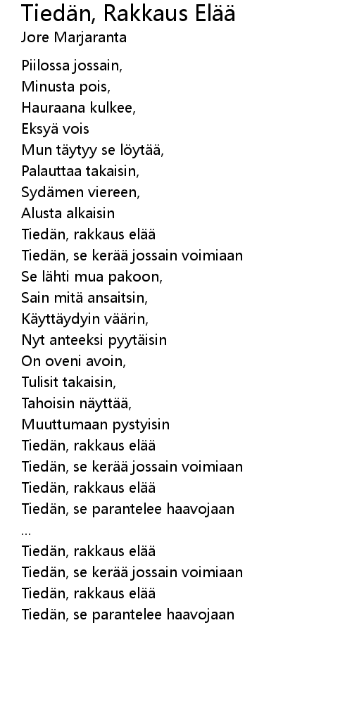 | Song | Tiedän, Rakkaus Elää |