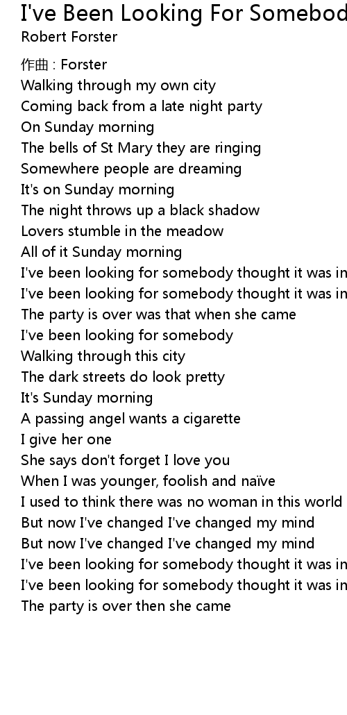| I' ve been looking for somebody | |