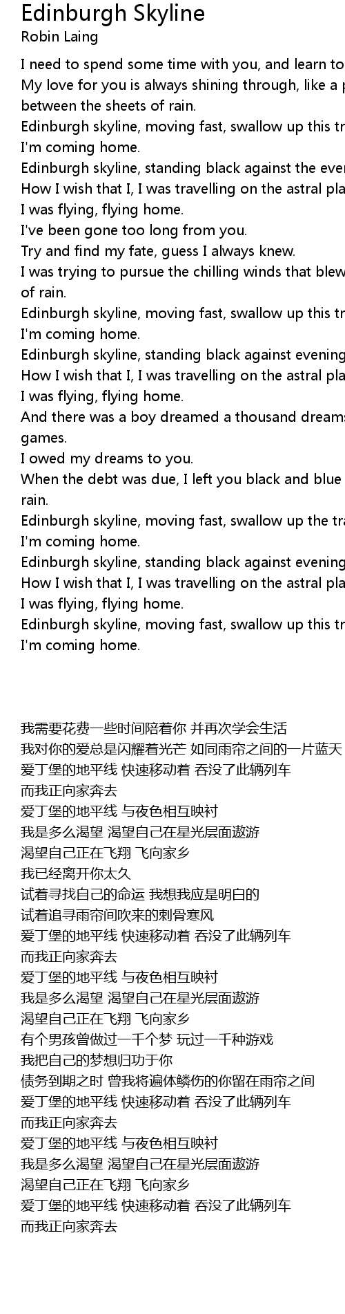 Edinburgh Skyline Lyrics