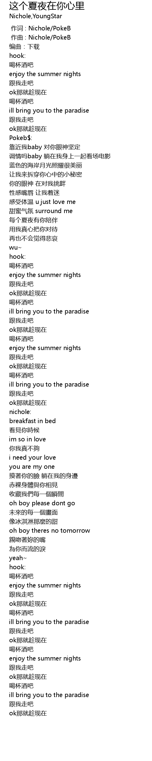 | [00:00.000] | 作词 : Nichole/PokeB |