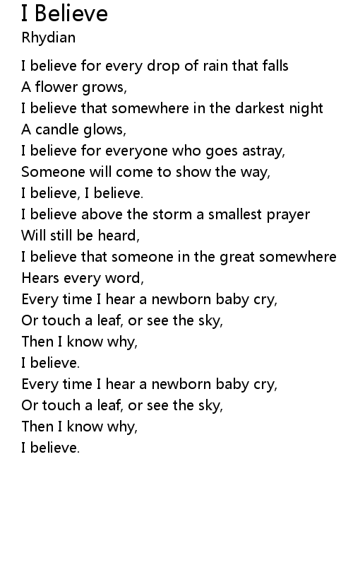 | I believe for every drop of rain that falls | |