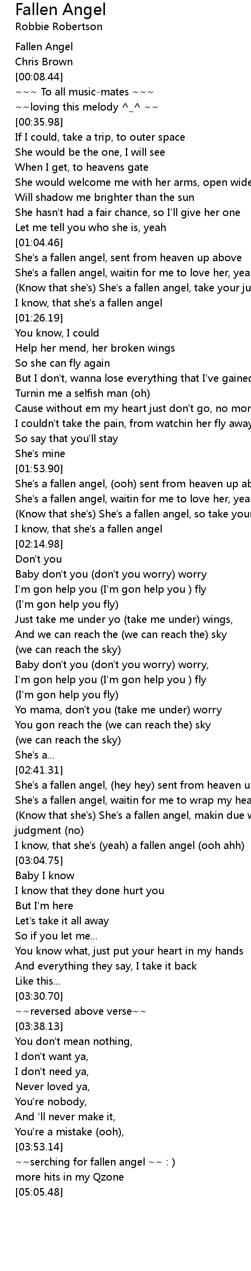 She's a fallen angel, waitin for me to wrap my heart around her, know |