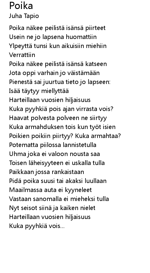 | Poikien poikiin piirtyy? Kuka armahtaa? | |