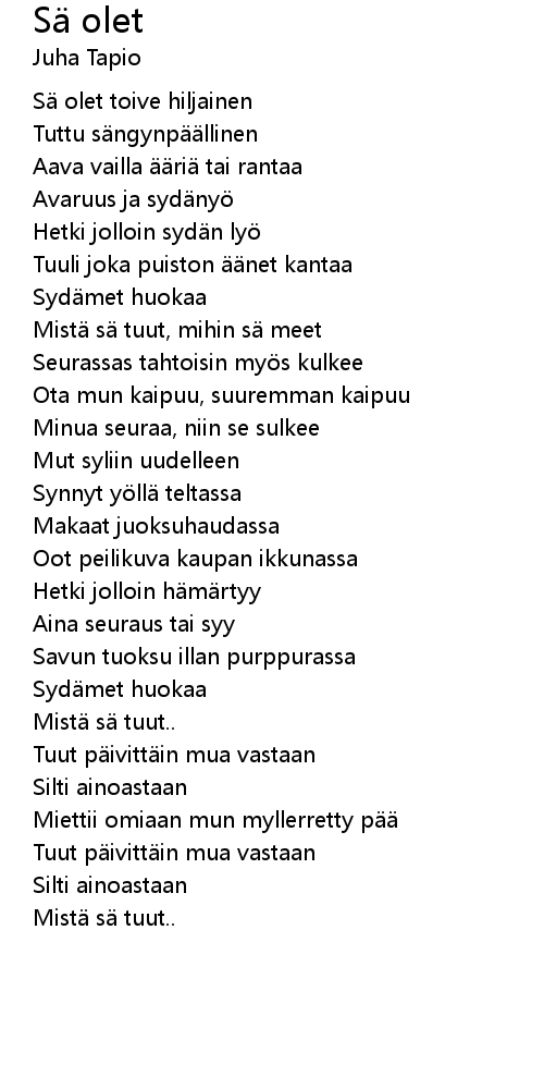 | Song | Sä olet |