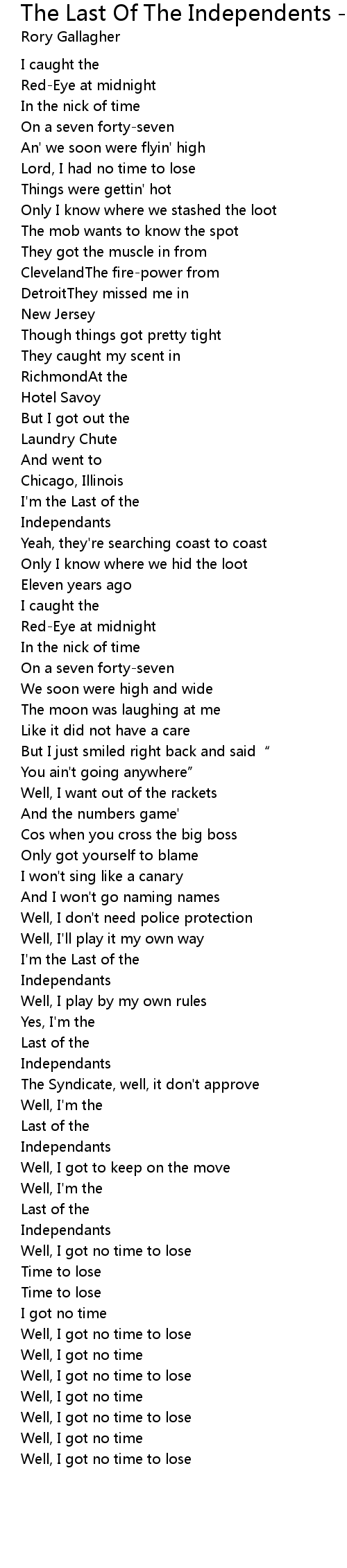 | Well, I got no time to lose | |