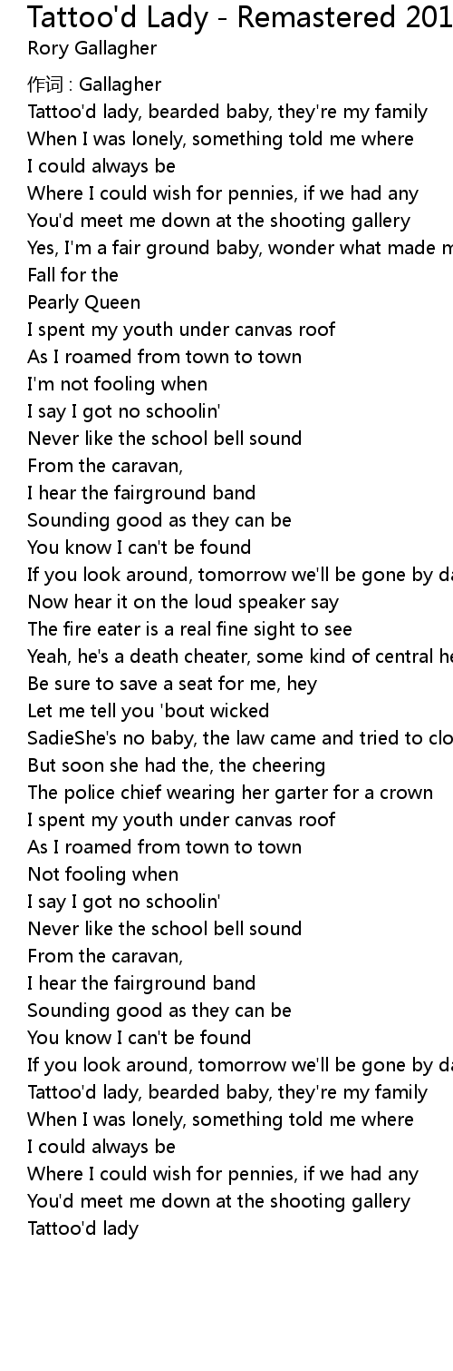 | Song | Tattoo'd Lady - Remastered 2011 |