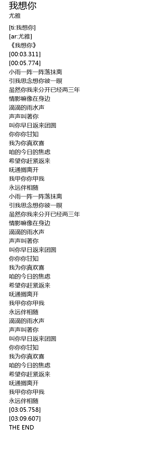 | [00:20.99] | yin wo si nian xiang ni bi yi ming |