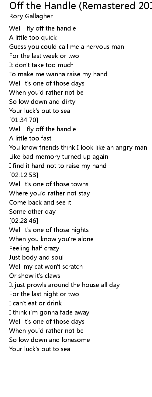 Off the Handle (Remastered 2012) - Remastered 2012 Lyrics