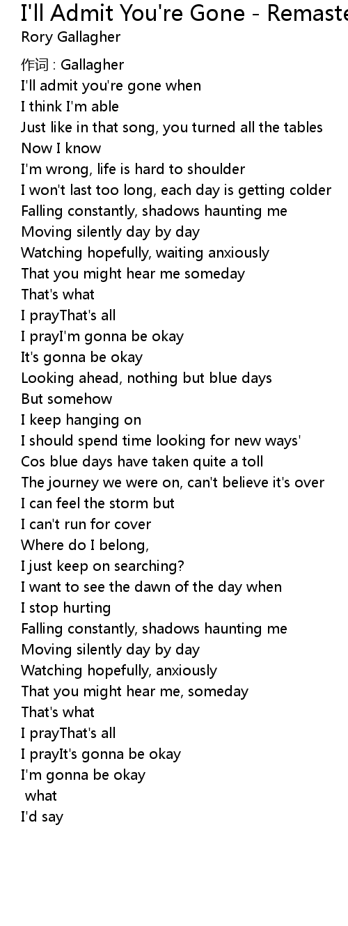 | Song | I'll Admit You're Gone - Remastered 2012 |