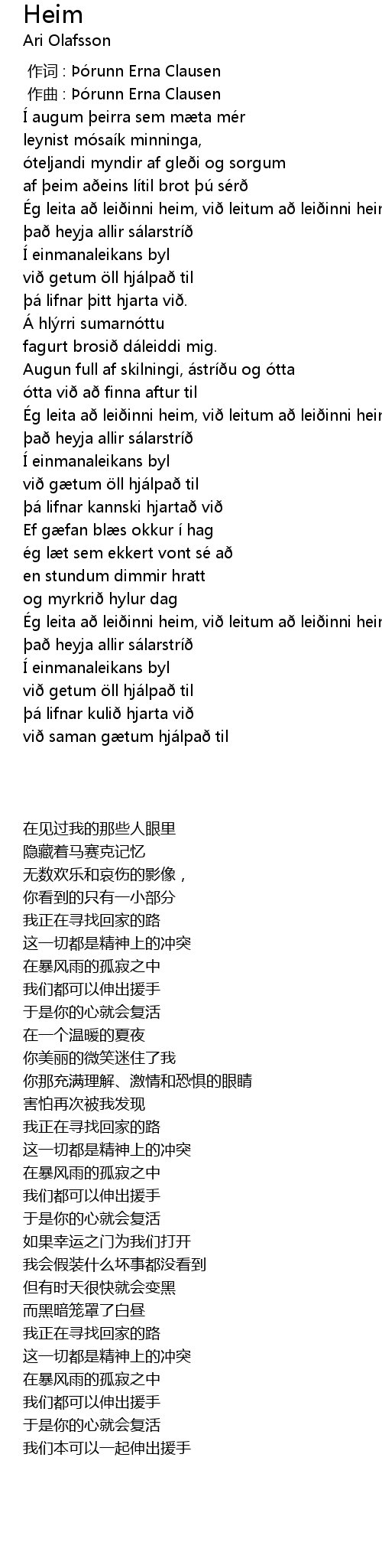 | [00:00.000] | 作词 : Þórunn Erna Clausen |
