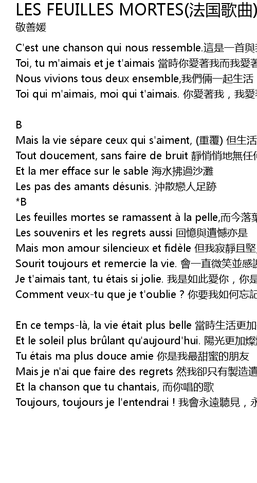 | Les feuilles mortes se ramassent à la pelle,而今落葉成堆 | |