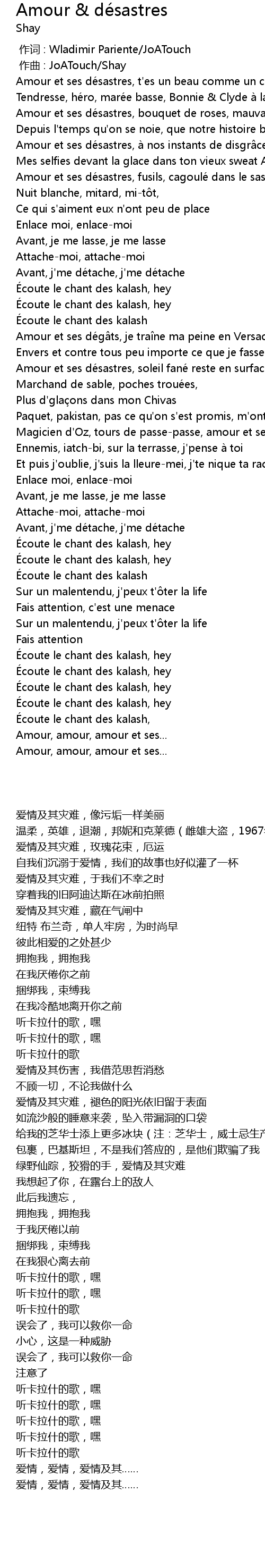| [00:14.48] | Amour et ses désastres, t'es un beau comme un coup de crasse |