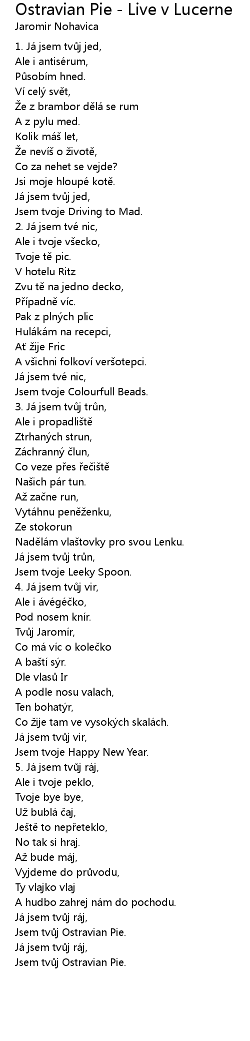 | Song | Ostravian Pie - Live v Lucerne |