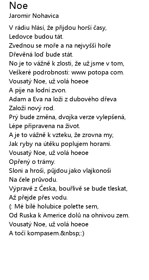 | Vousatý Noe, už volá hoeoe | |