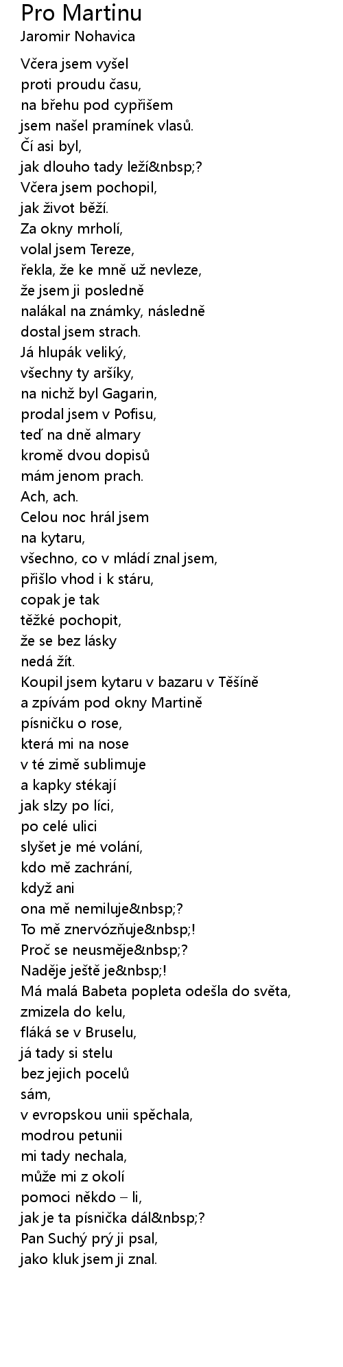 | a zpívám pod okny Martině | |