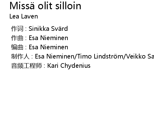 | [00:00.000] | 作词 : Sinikka Svärd |