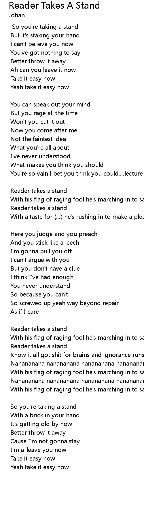 | Yeah take it easy now | |