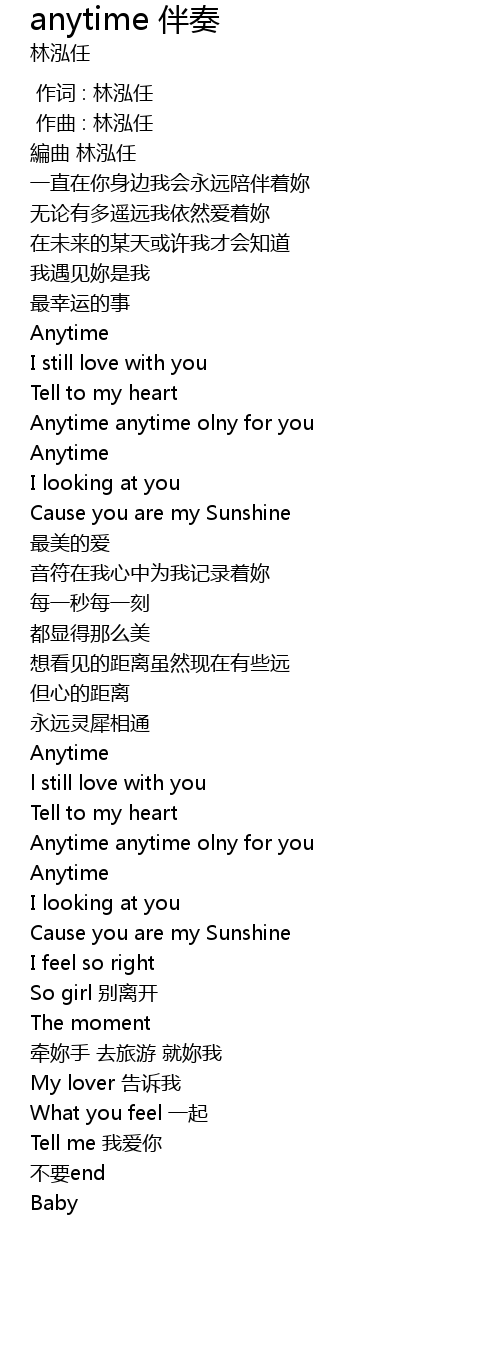 | [00:00.000] | 作词 : 林泓任 |