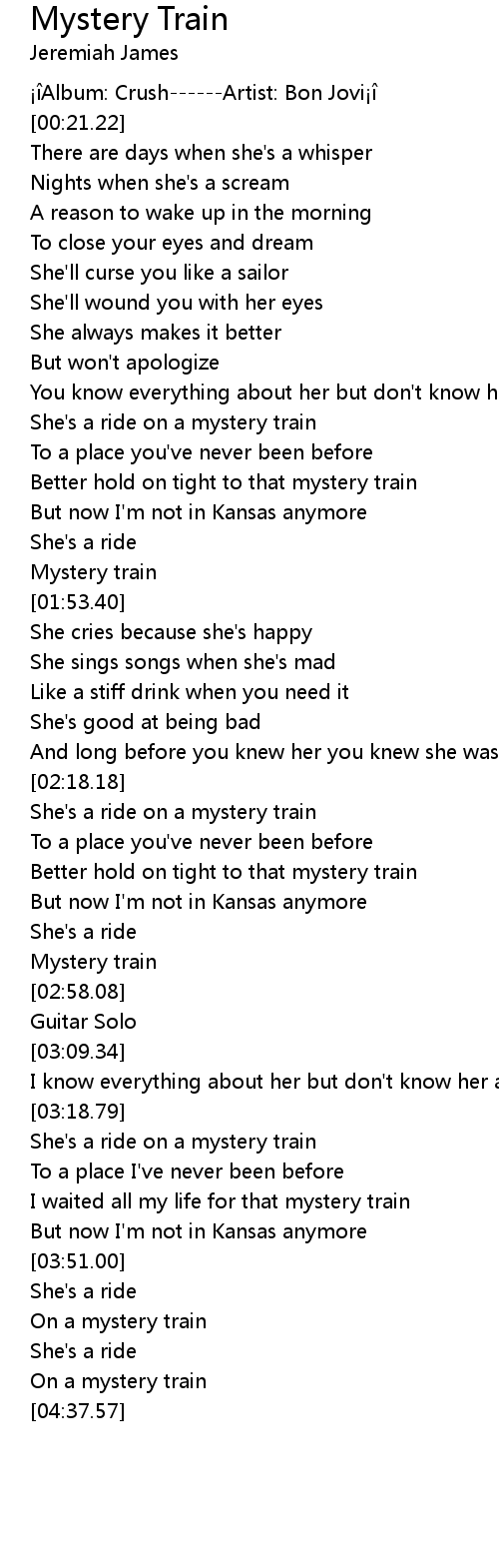 | [02:34.37] | Better hold on tight to that mystery train |