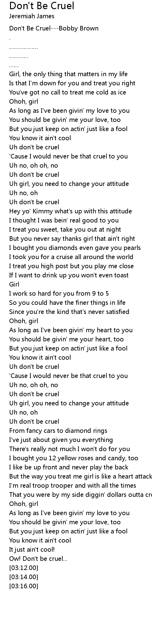 | [00:01.25] | Don't Be Cruel---Bobby Brown |