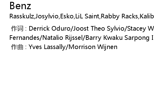 | [00:00.000] | 作词 : Derrick Oduro/Joost Theo Sylvio/Stacey Walroud/Boris J G Fernandes/Natalio Rijssel/Barry Kwaku Sarpong Inees |
