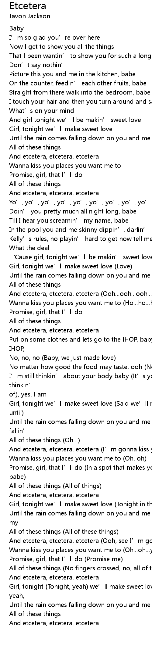 | [03:02.58] | And etcetera, etcetera, etcetera I' m gonna kiss you, yeah |