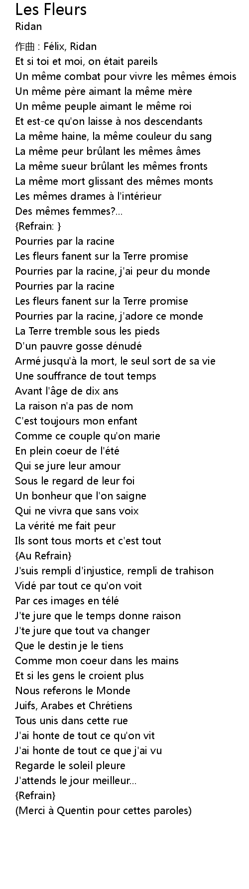 | Merci a Quentin pour cettes paroles |