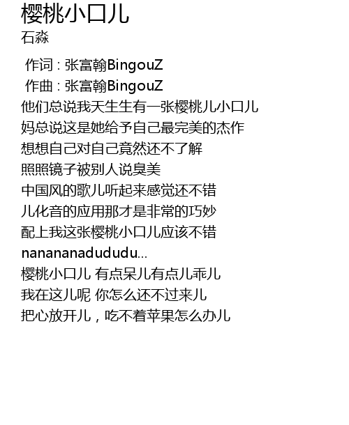 | [00:57.052] | 樱桃小口儿 有点呆儿有点儿乖儿 |