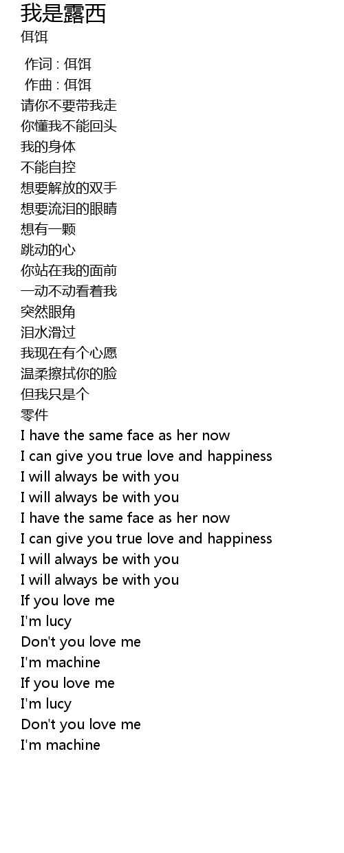 | [00:21.257] | qing ni bu yao dai wo zou |