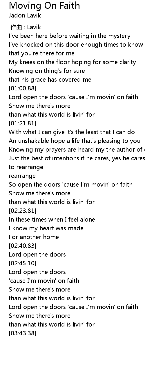 | [03:23.44] | Lord open the doors 'cause I'm movin' on faith |