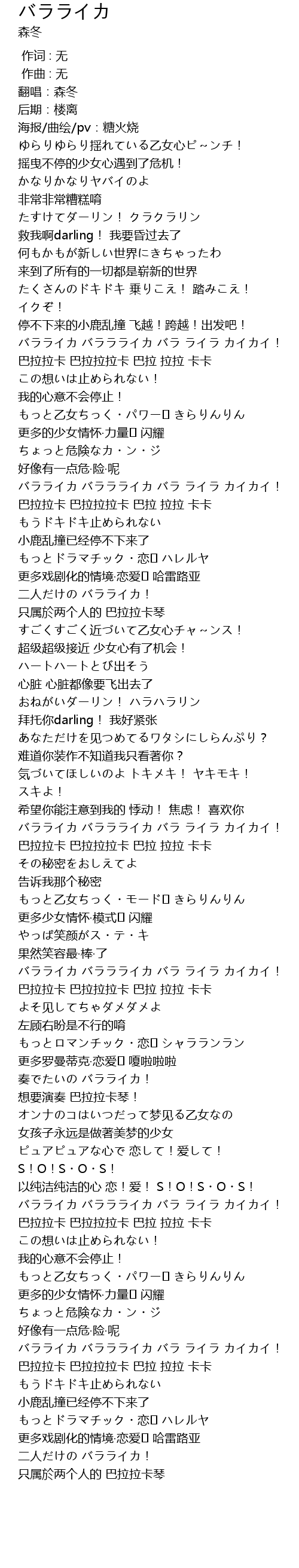 | [02:54.951] | 巴拉拉卡 巴拉拉拉卡 巴拉 拉拉 卡卡 |