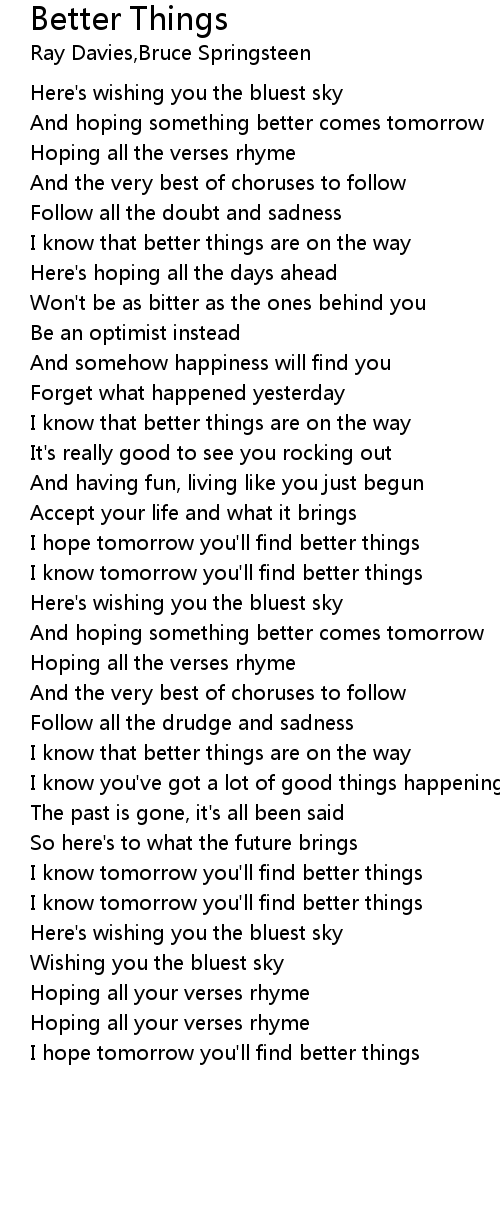 I know that better things are on the way |