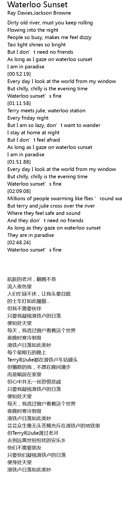 | [01:42.57] | As long as I gaze on waterloo sunset |