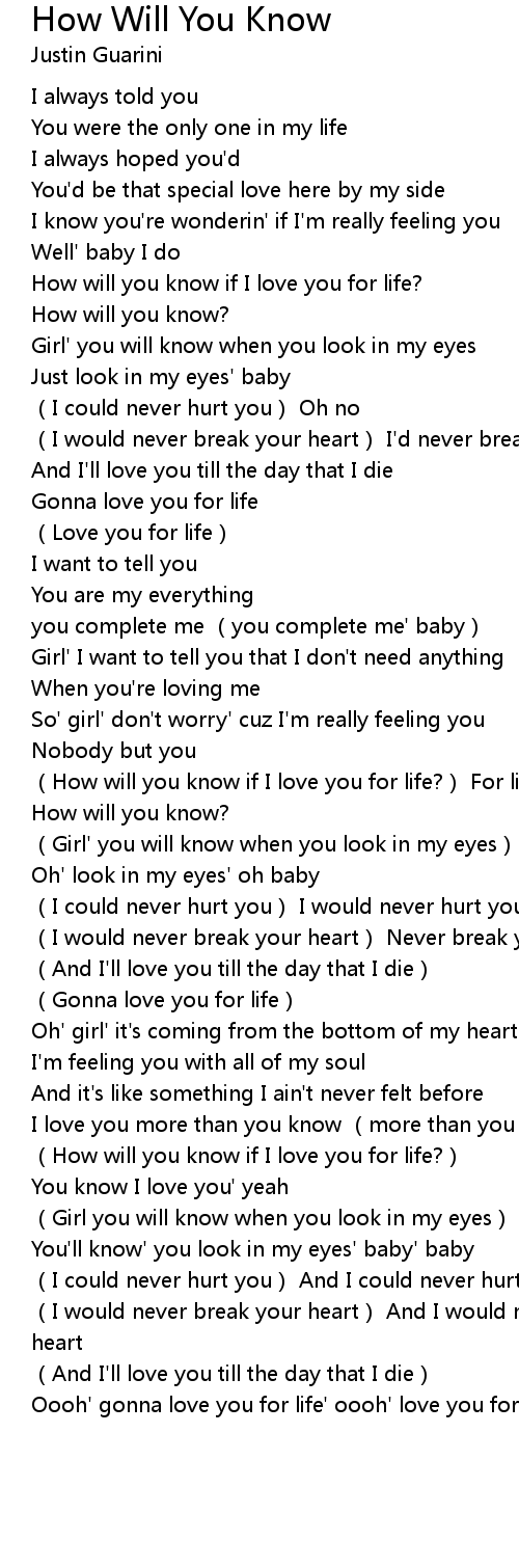 | Song | How Will You Know |