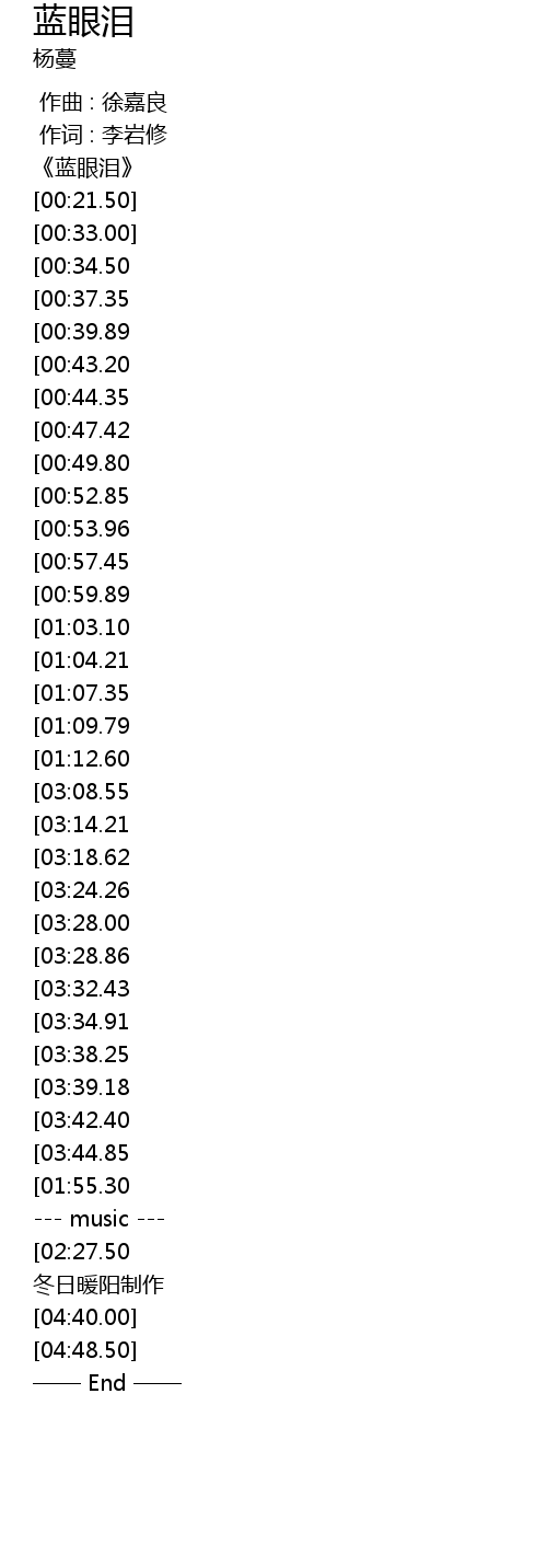 | [00:09.00] | 《蓝眼泪》 |