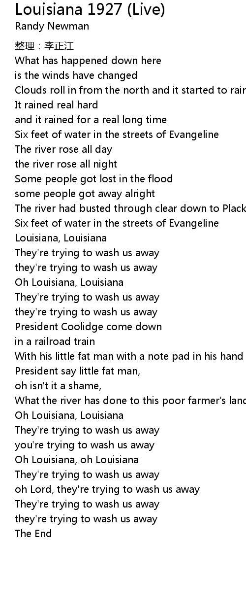 | [01:33.59] | Oh Louisiana, Louisiana |
