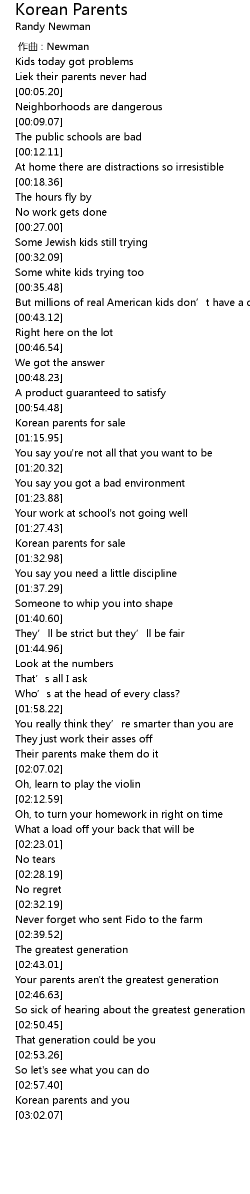 | [02:59.20] | Korean parents and you |