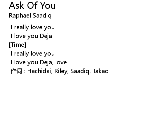 | [00:00.00] | 作词 : Hachidai, Riley, Saadiq, Takao |