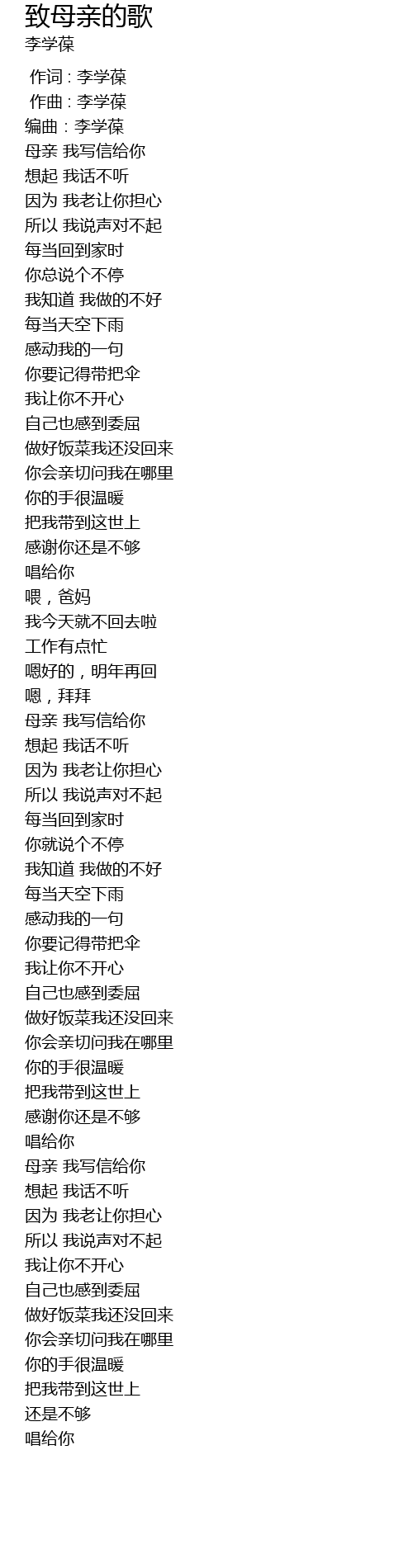 | [03:45.93] | mu qin wo xie xin gei ni |