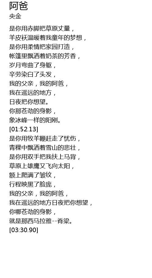 | [02:54.24] | 我的父亲,我的阿爸, |