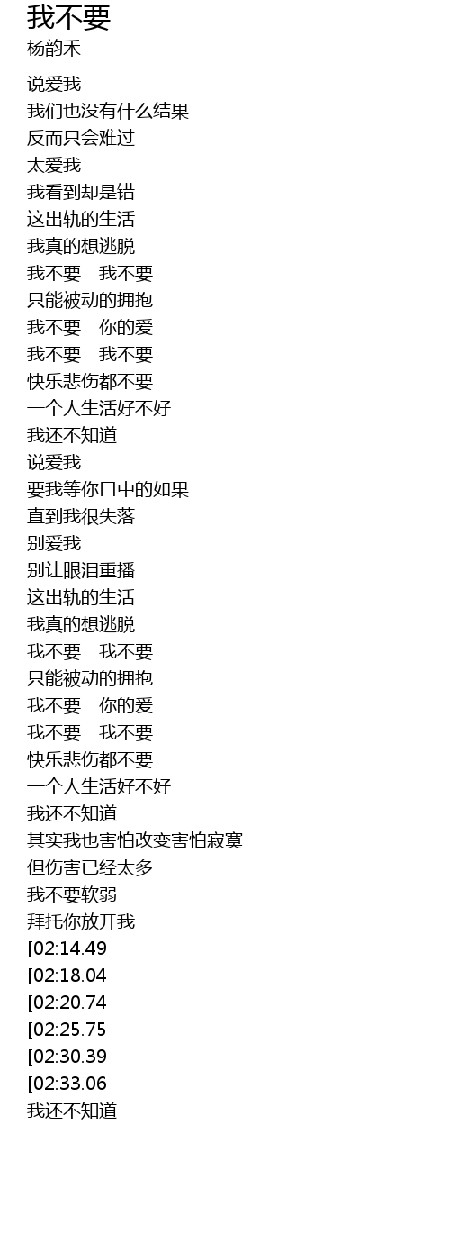 | [02:39.30][02:14.49] | 我不要 我不要 |