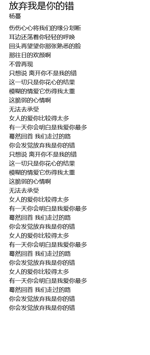 | [01:43.49] | 你会发觉放弃我是你的错 |