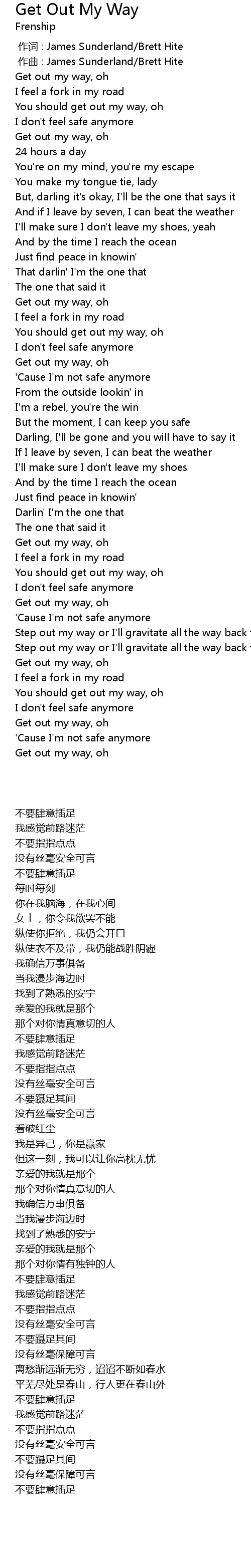 | [00:00.000] | 作词 : James Sunderland/Brett Hite |